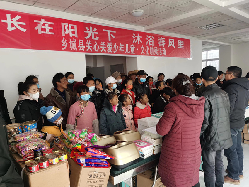 鄉(xiāng)城縣開展關(guān)心關(guān)愛少年兒童—文化助殘活動。