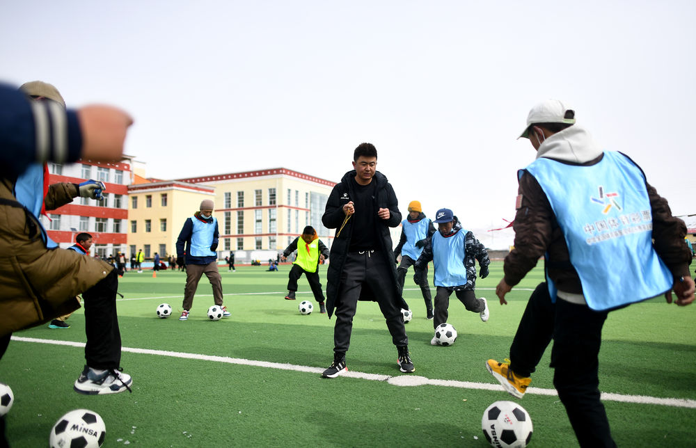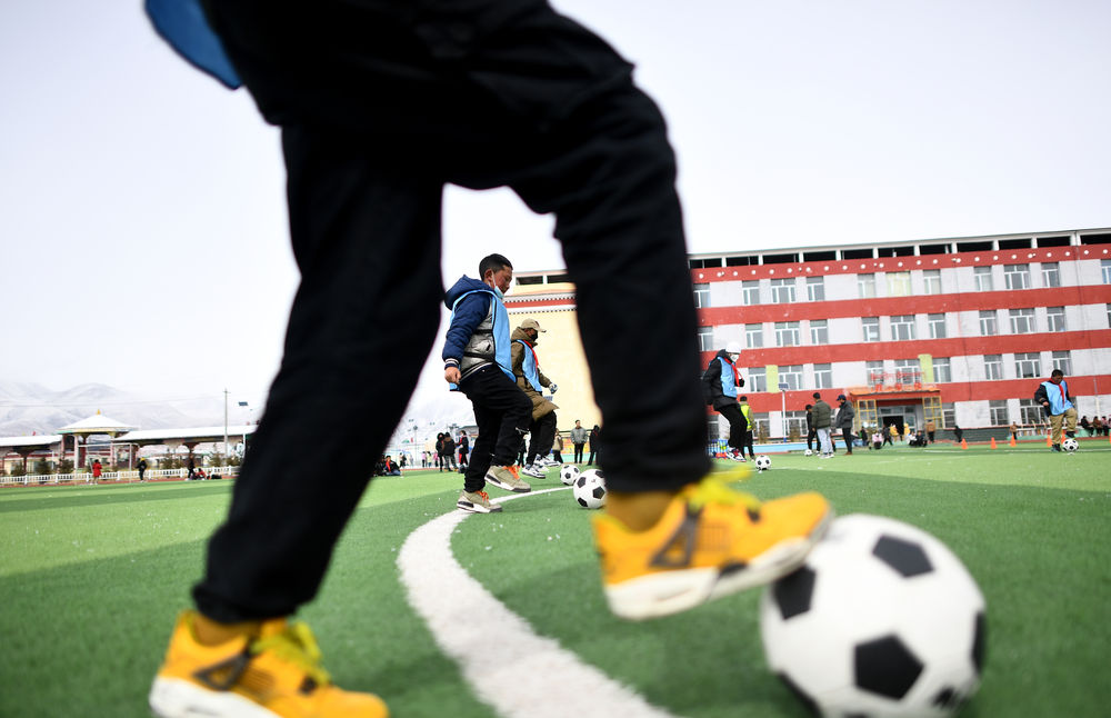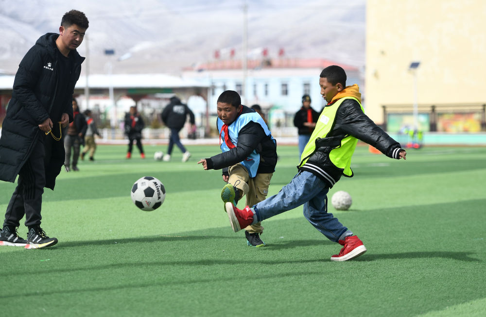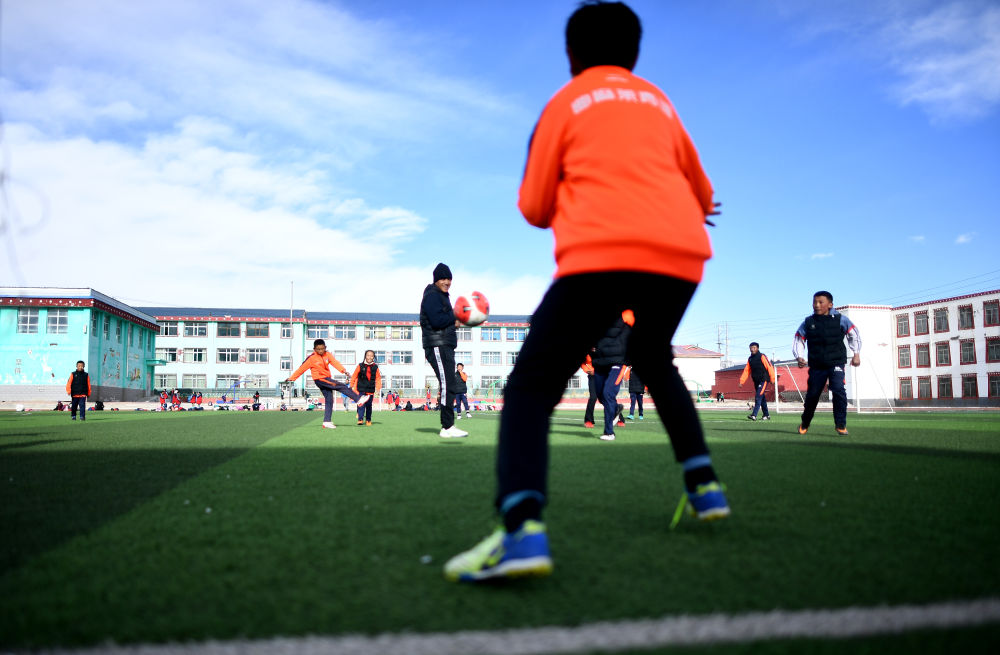 3月1日,在玉樹州治多縣,吉尕小學(xué)學(xué)生在足球訓(xùn)練課上。新華社記者 張宏祥 攝