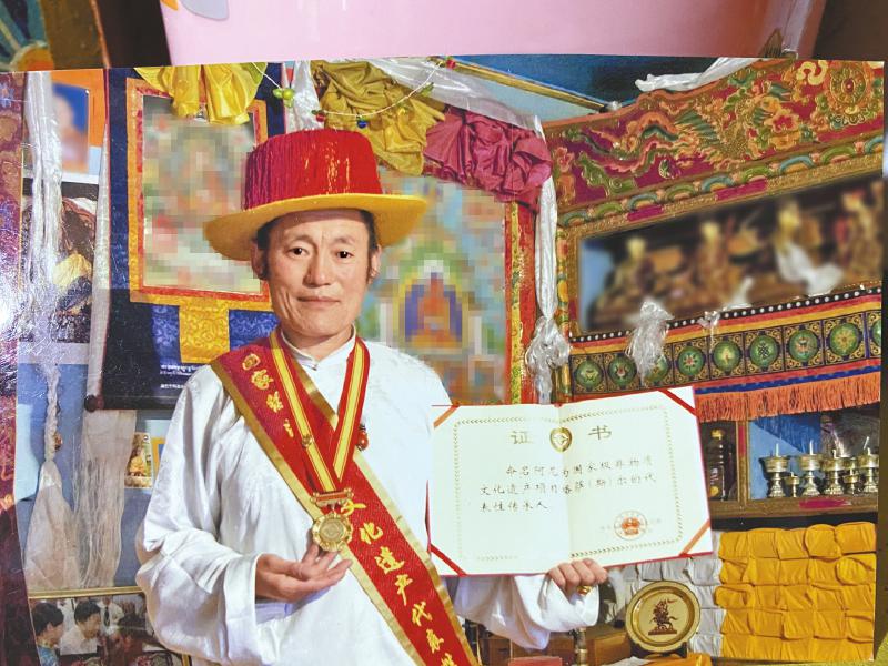 阿尼被命名為國家級非物質(zhì)文化遺產(chǎn)項(xiàng)目格薩(斯)爾的代表性傳承人。圖片由受訪者提供