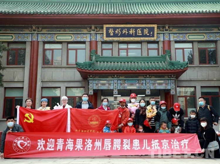 圖為來自青海省果洛藏族自治州的唇腭裂患兒和患兒家屬與中國醫(yī)學(xué)科學(xué)院整形外科醫(yī)院專家、北京同心共鑄公益基金會的志愿者等合影 攝影:劉莉