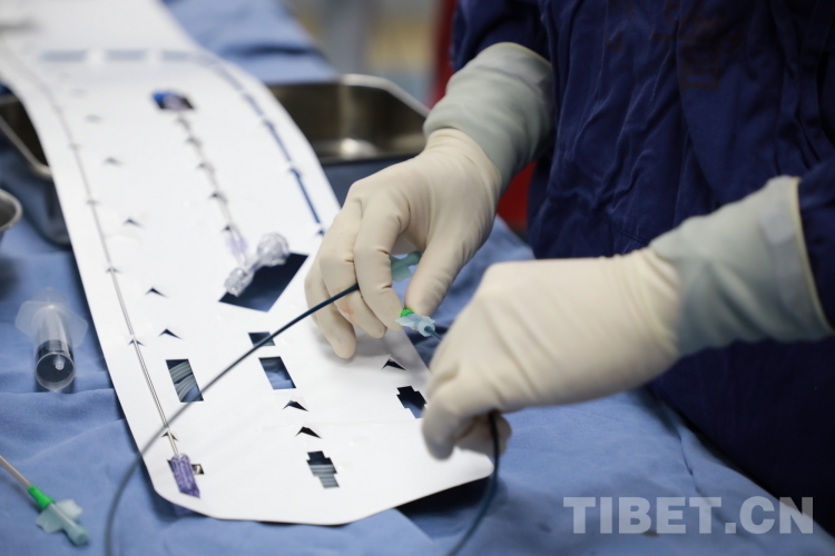 圖為北醫(yī)三院專家團(tuán)隊在為來自青海省果洛藏族自治州的先心病患兒手術(shù)時使用的直徑僅4毫米的介入導(dǎo)管 攝影:劉莉