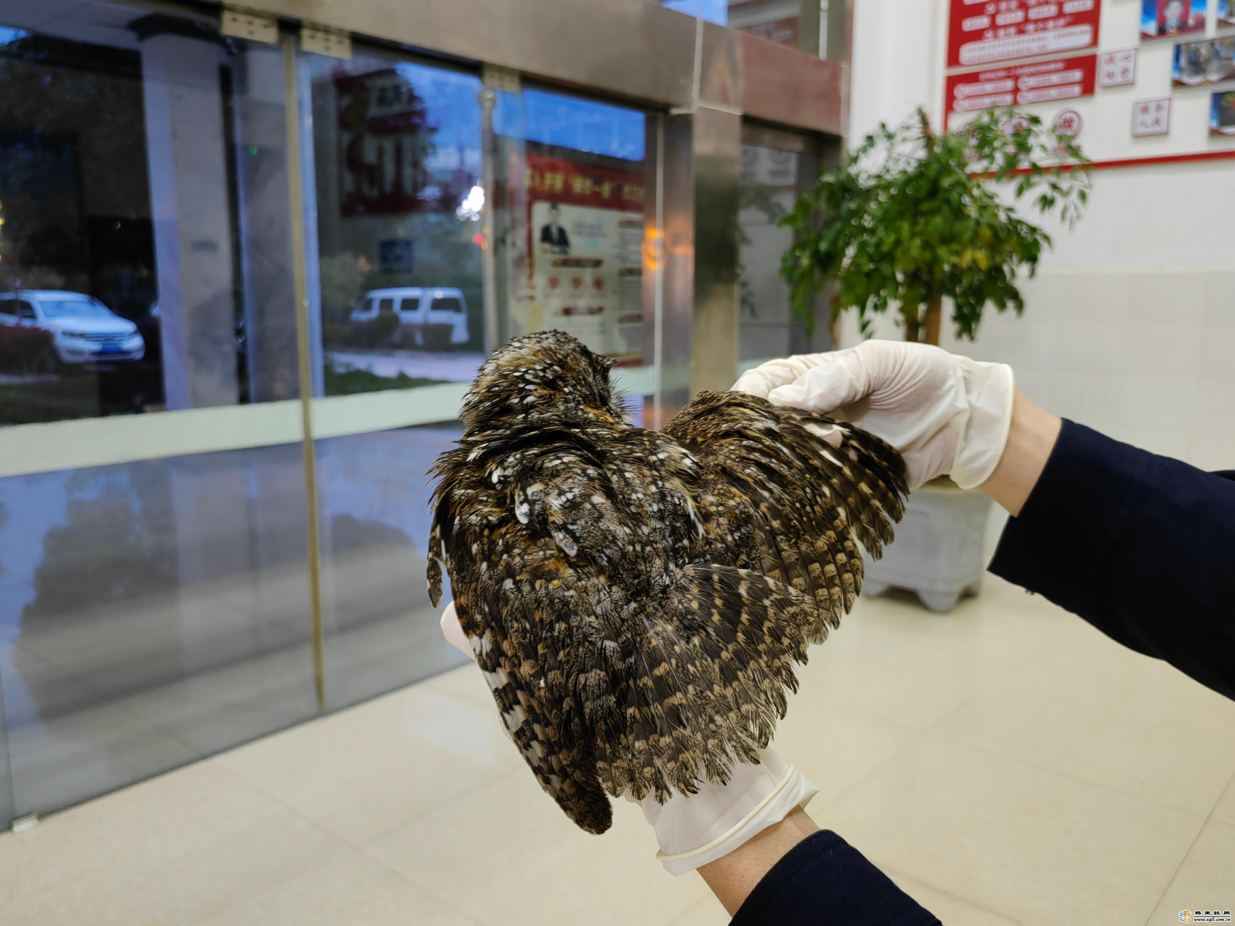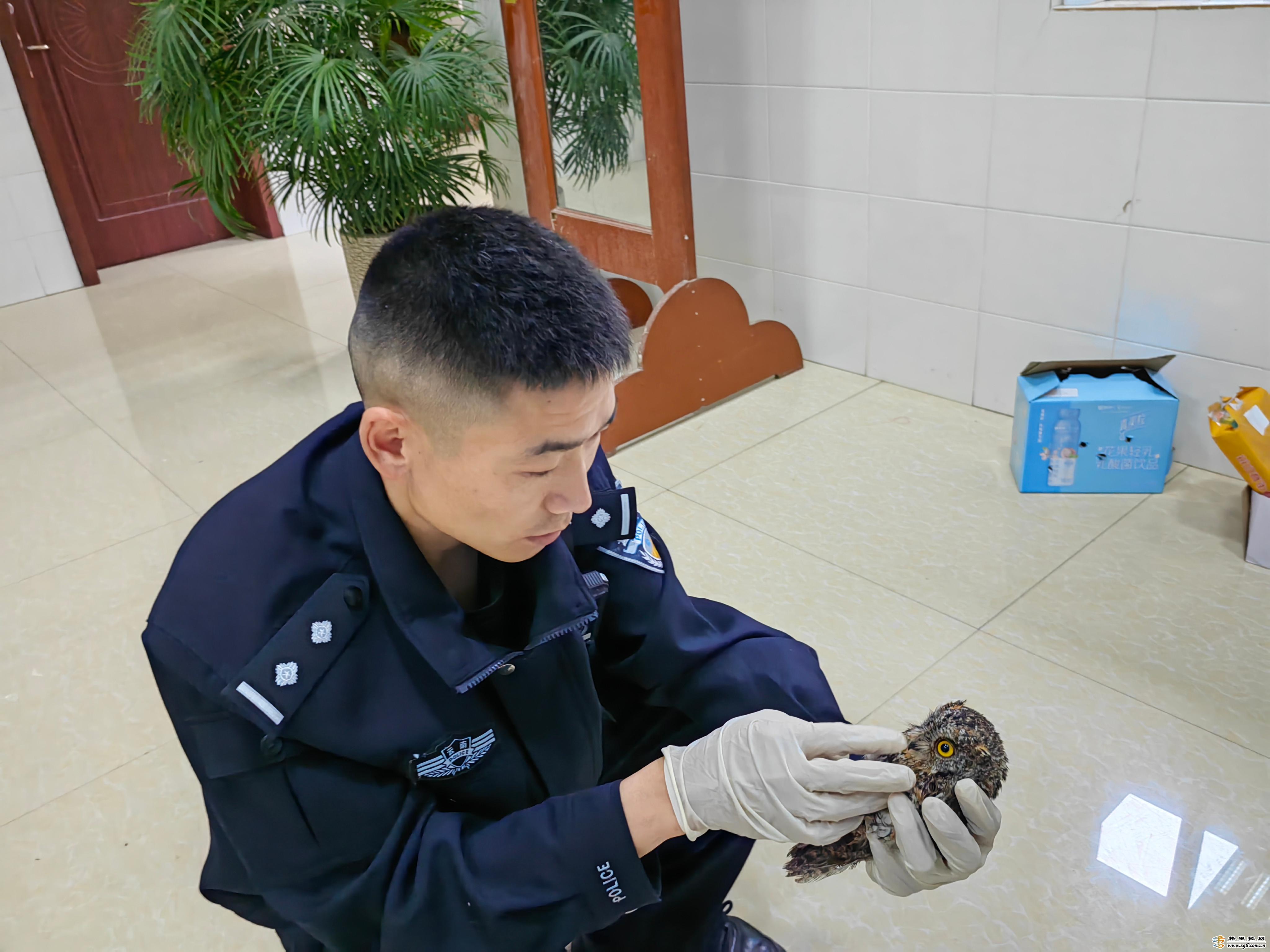 近日,維西縣公安局森警大隊民警接到群眾報警稱:“在興維大道錦盛小區(qū)發(fā)現(xiàn)一只受傷的貓頭鷹,請求森警大隊民警前往救助”。民警趕到現(xiàn)場時,熱心群眾已經(jīng)將貓頭鷹放在一個紙盒里,該貓頭鷹全長約20厘米,身上部分羽毛是濕的。