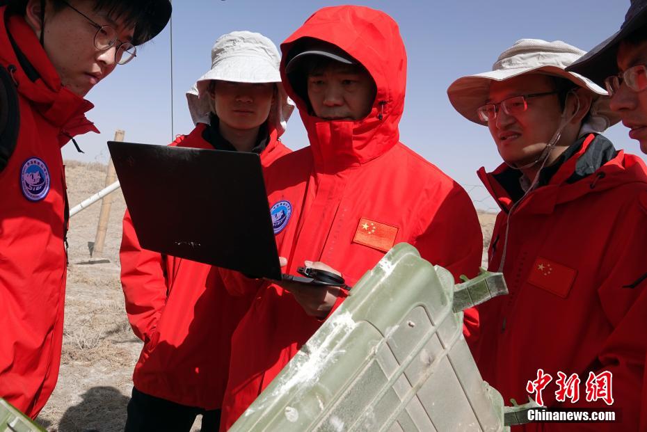觀測站現(xiàn)場,第二次青藏科考隊(duì)員、中科院空天院團(tuán)隊(duì)一行現(xiàn)場查看觀測數(shù)據(jù)。中新社記者 孫自法 攝