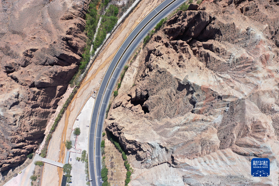 這是4月17日拍攝的青海省海南藏族自治州貴德縣境內(nèi)的丹霞地貌(無人機照片)。新華社 趙玉和 攝