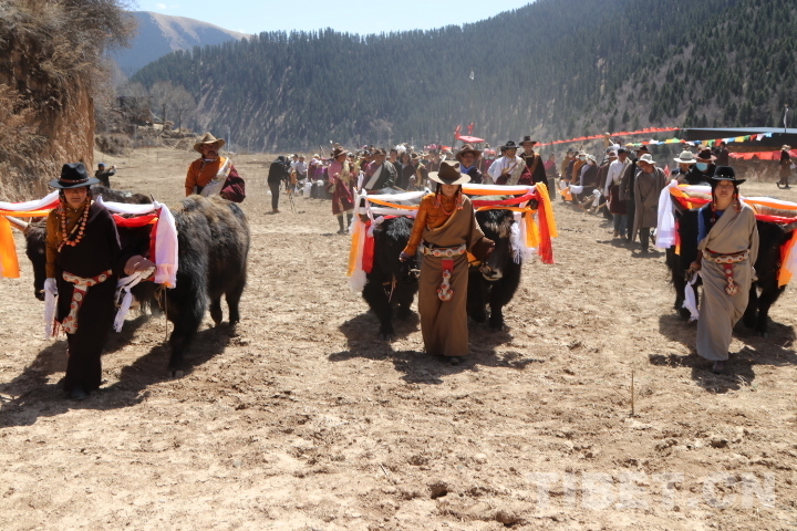 圖為藏族民眾牽著耕牛參加春耕儀式?!⊥觖惿?供圖