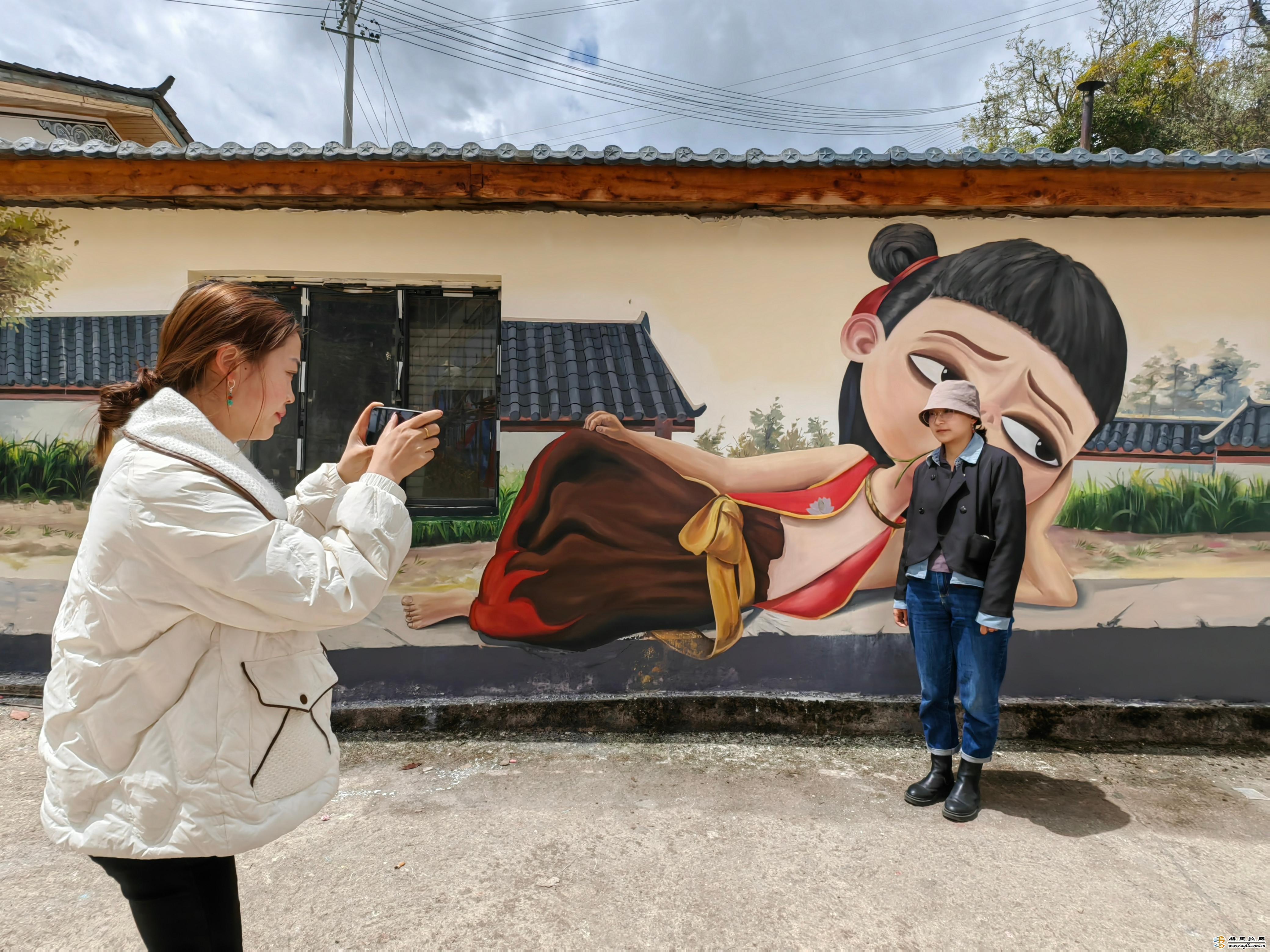 墻繪緊扣“邂逅幸福、遇見幸?!钡闹黝},采用本土少數(shù)民族文化藝術元素和流行文化藝術元素相融合的方法,繪制成了一幅幅將美麗留于鄉(xiāng)村,用藝術留住鄉(xiāng)愁的畫卷。
