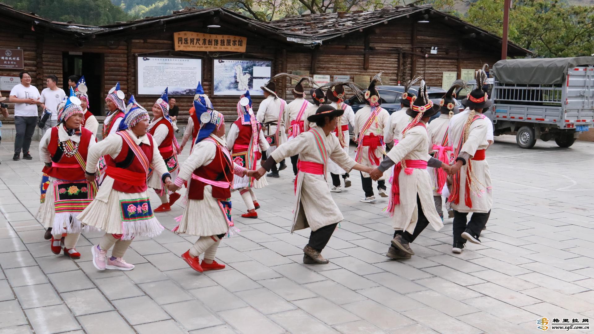 同樂山寨,維西縣保存最為完整的傈僳族傳統(tǒng)村落,村寨建筑多為木楞房,用木頭搭建而成,不上漆、不用鐵釘,取材自然,構(gòu)造簡單,呈現(xiàn)出自然樸實之美。當(dāng)?shù)乩圩迦罕娭辛鱾髦环N自娛自樂的舞蹈,名為阿尺目刮,意為山羊的歌舞。如今,游客們只要來到同樂山寨,就有一群身著艷麗民族服飾的傈僳族群眾,手挽著手,踏著歡快的節(jié)拍,迎接他們的到來。