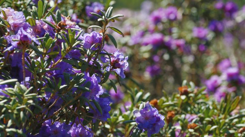 夏天,位于香格里拉市小中甸鎮(zhèn)的杜鵑花海競相綻放,紫色、粉色的花朵開成了海,與藍(lán)天白云遙相呼應(yīng),藏房點(diǎn)綴其間,美不勝收。每當(dāng)花季,當(dāng)?shù)氐睦习傩赵诨ê_厰[起特色美食,牦牛酸奶、苦蕎粑粑、酥油茶等美食供游客享用,坐在花海邊,品嘗當(dāng)?shù)靥厣朗?,是這個(gè)夏天小中甸花海獨(dú)有的浪漫。