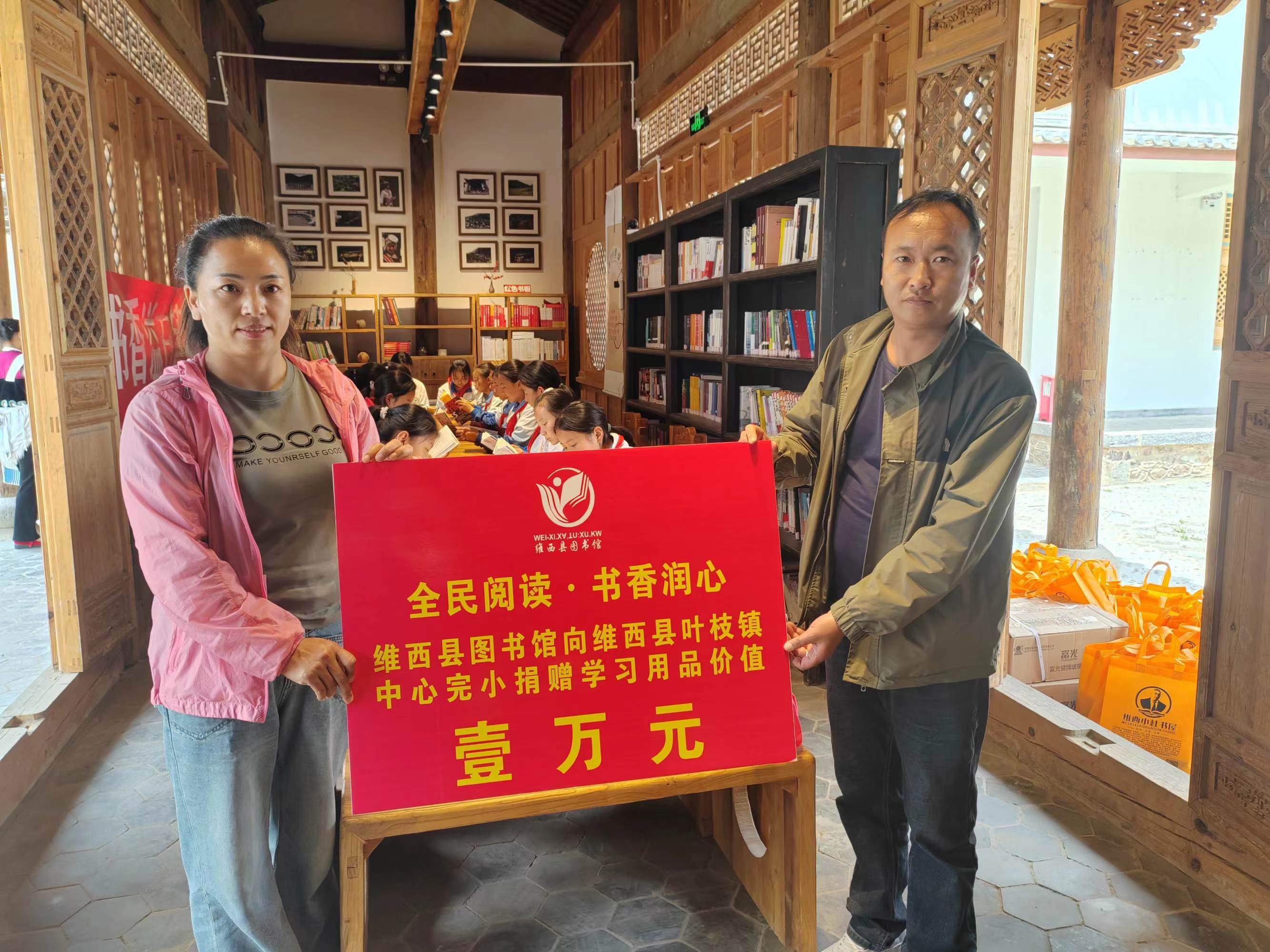 當(dāng)天,還在葉枝鎮(zhèn)鄉(xiāng)愁書院開展了讀書分享活動(dòng),維西縣圖書館現(xiàn)場(chǎng)向葉枝鎮(zhèn)中心完小捐贈(zèng)了價(jià)值10000元的學(xué)習(xí)用品。