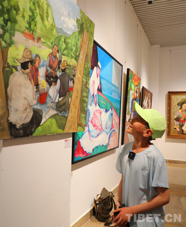 孩子們尤其喜歡美術館,對色彩斑斕的畫作興趣更大。五年級的公卻西然指著一幅藏族群眾過林卡的畫作做介紹,“這是人們在公園里野餐。我們喜歡這樣的活動?!?/span>聽隨團的老師介紹,在玉樹,到了夏天也會常帶孩子們去野餐玩耍。吃著零食、在樹蔭下或玩游戲或打鬧說笑,實在太愜意了。