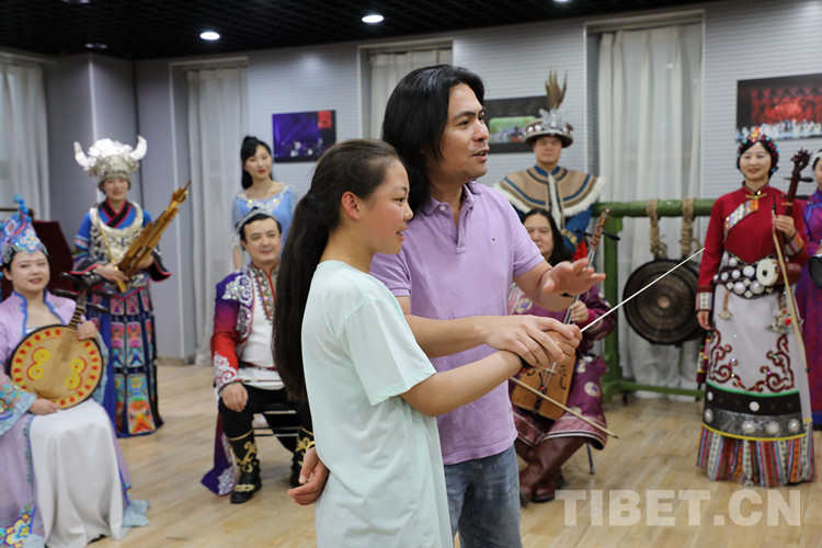圖為玉樹姑娘體驗做樂隊指揮的快樂 攝影:王茜