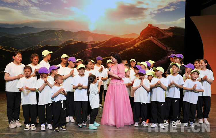 圖為孩子們在舞臺上和中央民族歌舞團國家一級歌唱家劉媛媛共同表演  攝影:王茜