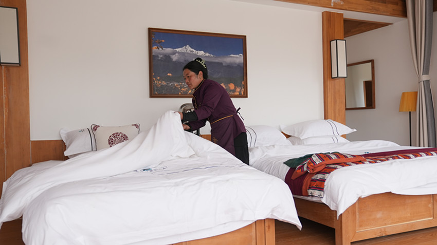 村民在民宿酒店務(wù)工。