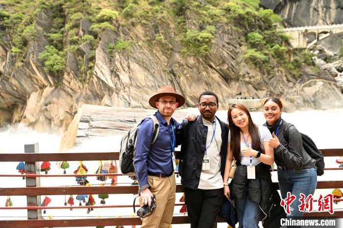 圖為各國(guó)“Z世代”青年代表在香格里拉虎跳峽合影留念?!±罴螊埂z