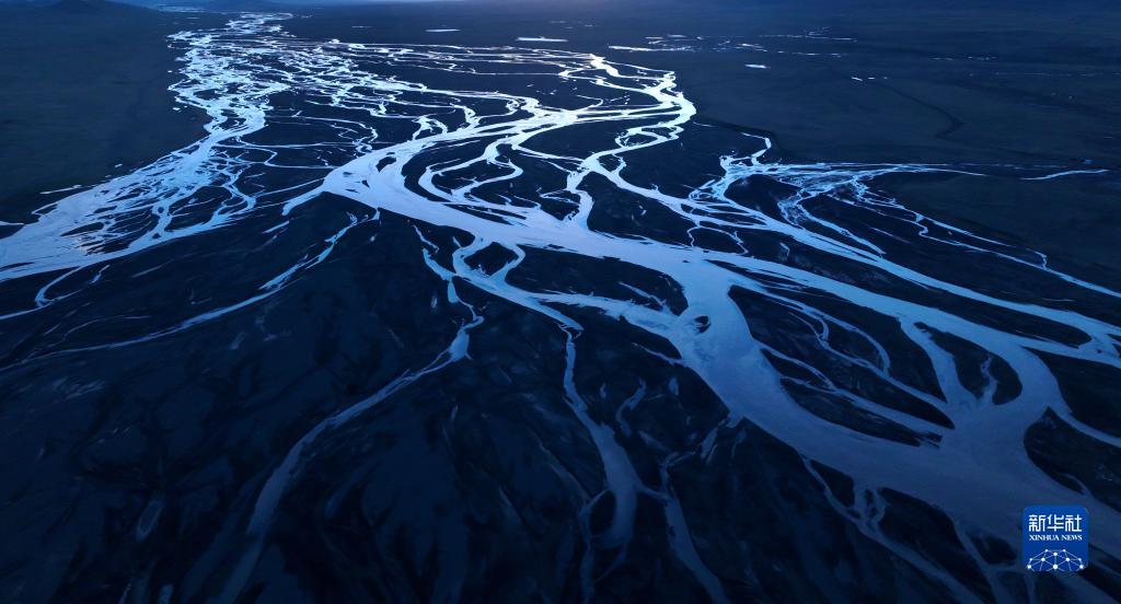 這是2022年7月27日在長江源地區(qū)拍攝的囊極巴隴河道,長江正源沱沱河和南源當曲在此匯合(無人機照片)。新華社記者 肖藝九 攝