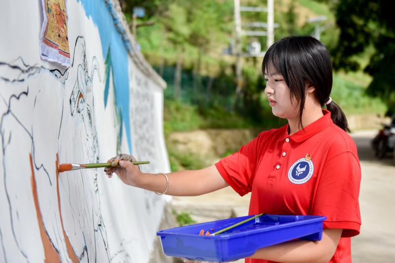 環(huán)境提升美人心。學(xué)院建筑與工藝技術(shù)系及院團(tuán)委師生共20人到定點(diǎn)幫扶點(diǎn)拉日村阿尺瑪?shù)走M(jìn)行鄉(xiāng)村風(fēng)貌美化工作,開展以黨建、推廣普通話及傈僳族文化為主題的墻面繪畫,累計(jì)完成400平米的墻繪,推動(dòng)農(nóng)村人居環(huán)境提升,讓鄉(xiāng)村面貌煥然一新。