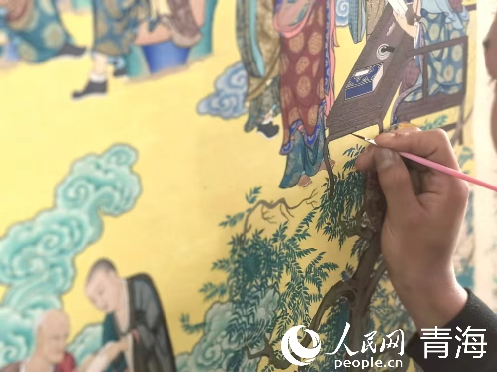 桑杰卡家中共四口人,守著5畝地,僅靠種小麥過活,收入微薄。同仁市鄉(xiāng)村振興幫扶車間的設(shè)立,讓這原本拮據(jù)的四口之家看到了新的出路,桑杰卡和姐姐來到幫扶車間之一的龍樹畫苑學(xué)習(xí)唐卡技藝。此后,日子有了變化:“來這的第一年有8000多的補(bǔ)助,食宿不用自己花錢,經(jīng)過八九年的學(xué)習(xí)和沉淀,現(xiàn)在我一年收入能有10萬多?!?/p>