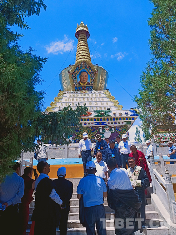 圖為與會(huì)人員在共和縣恰不恰鎮(zhèn)班禪塔林寺觀摩 攝影:華旦旦增