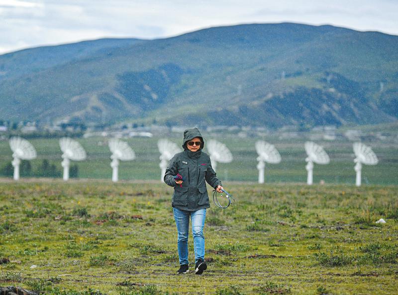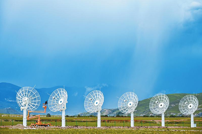 7月8日,四川省甘孜州稻城縣噶通鎮(zhèn)天氣說變就變。在國(guó)家重大科技基礎(chǔ)設(shè)施——空間環(huán)境地基綜合監(jiān)測(cè)網(wǎng)(子午工程二期)圓環(huán)陣太陽射電成像望遠(yuǎn)鏡項(xiàng)目建設(shè)現(xiàn)場(chǎng),中國(guó)電科第39研究所現(xiàn)場(chǎng)施工負(fù)責(zé)人葉愛林和同事正在進(jìn)行天線增益調(diào)試實(shí)驗(yàn)。突然,一道閃電劃過天際,轟隆隆的雷聲過后便是傾盆大雨,葉愛林和同事不得不停下手中正在進(jìn)行的實(shí)驗(yàn),臨時(shí)找地方躲雨?!斑@雨下不了多久,等雨停了,我們?cè)倮^續(xù)?!痹陧?xiàng)目建設(shè)現(xiàn)場(chǎng)已工作了480多天的他,被同事們稱作半個(gè)氣象“土專家”。他不僅能“察言觀色”看懂高原上的云彩,還能大差不差地推測(cè)出天氣變化。在海拔3800多米的噶通鎮(zhèn),許多科研人員像葉愛林一樣,默默奮戰(zhàn),希望在建的這一國(guó)家重大科技基礎(chǔ)設(shè)施能早日運(yùn)行,為中國(guó)空間科學(xué)事業(yè)的發(fā)展提供關(guān)鍵性的探索幫助及技術(shù)支持,使我國(guó)步入世界空間科學(xué)領(lǐng)域的先進(jìn)行列。
