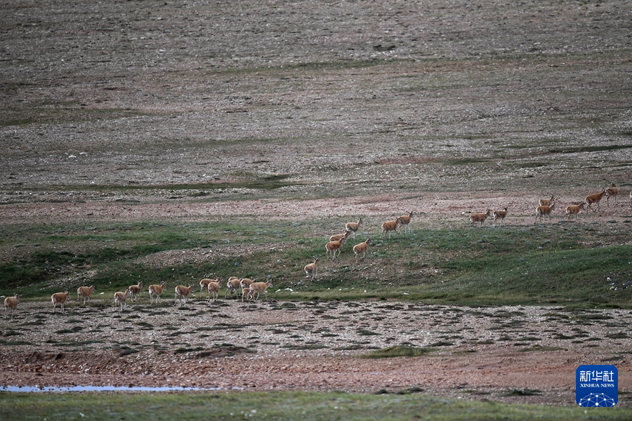 7月28日,一群藏羚羊在可可西里境內(nèi)活動。新華社記者 韓方方 攝