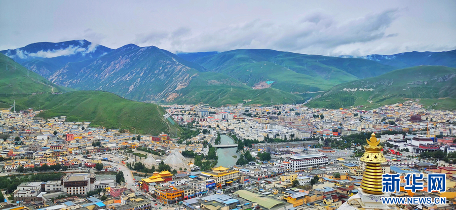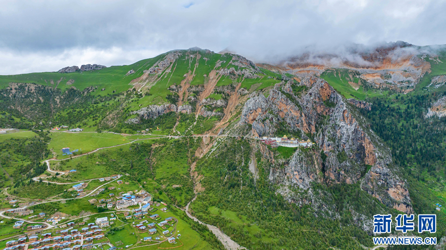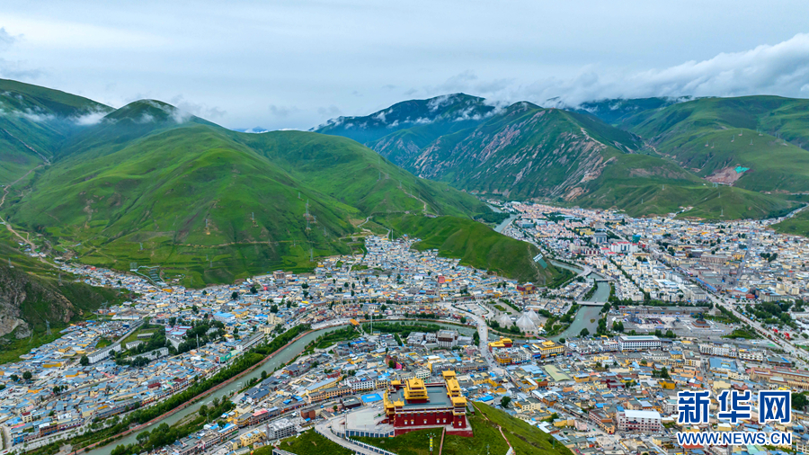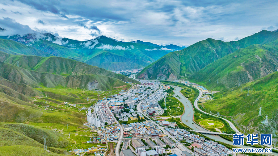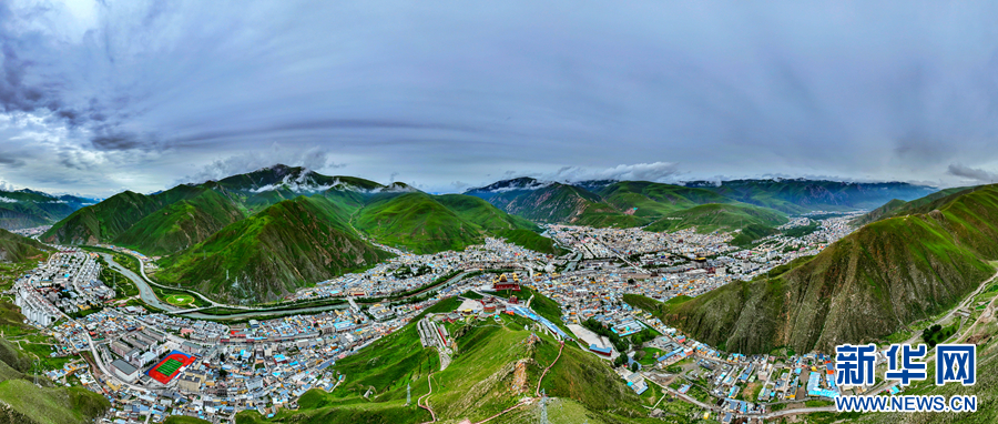 圖為青海省玉樹藏族自治州玉樹市的夏日風(fēng)光(無人機全景照片)。新華網(wǎng) 宋忠勇 攝