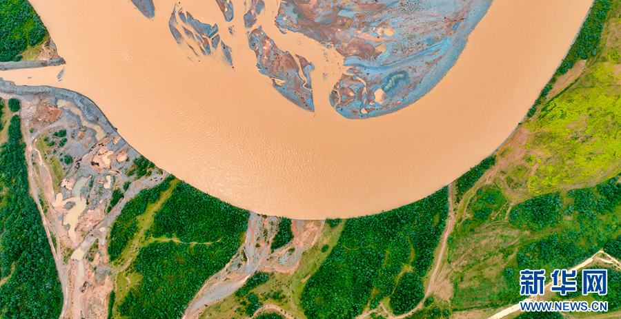 圖為在青海省玉樹藏族自治州雜多縣境內(nèi)拍攝的扎曲河(無人機照片)。新華網(wǎng) 宋忠勇 攝