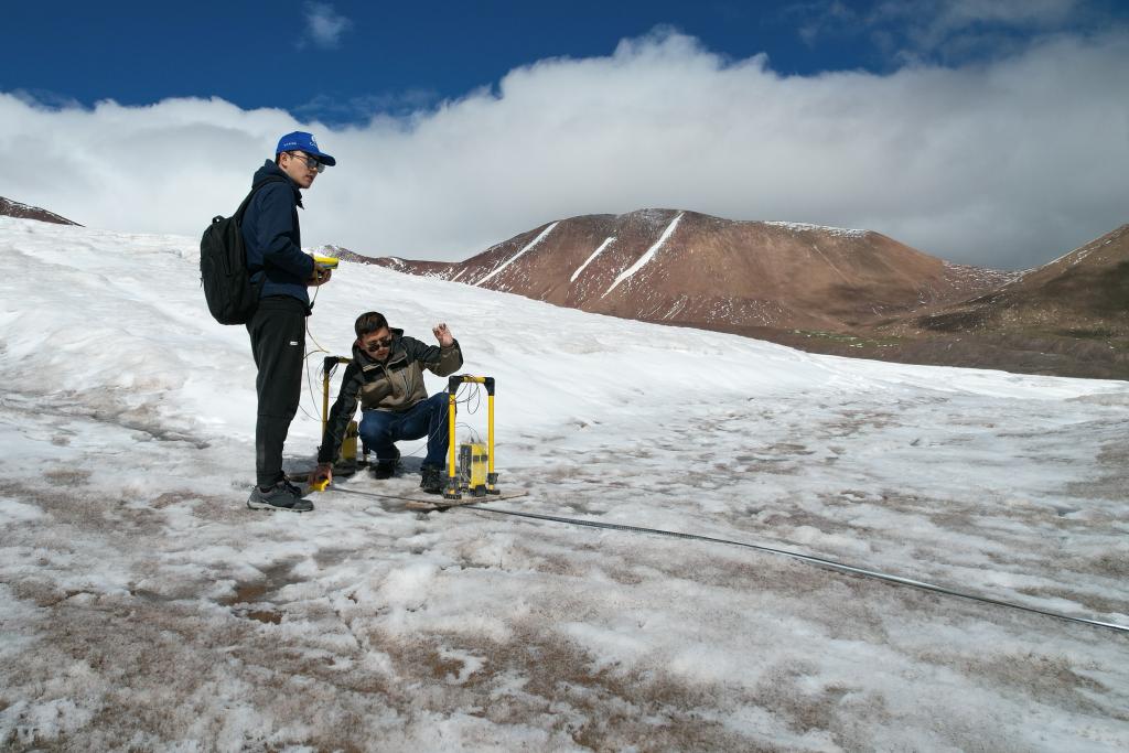 2023年江源綜合科學考察隊近日登上長江源區(qū)的兩條冰川——冬克瑪?shù)妆ê透窭|雪山主峰冰川,使用地質(zhì)雷達探測冰川厚度,為計算冰儲量積累基礎(chǔ)數(shù)據(jù),透過冰川演化揭示江源高寒地區(qū)的氣候變遷。