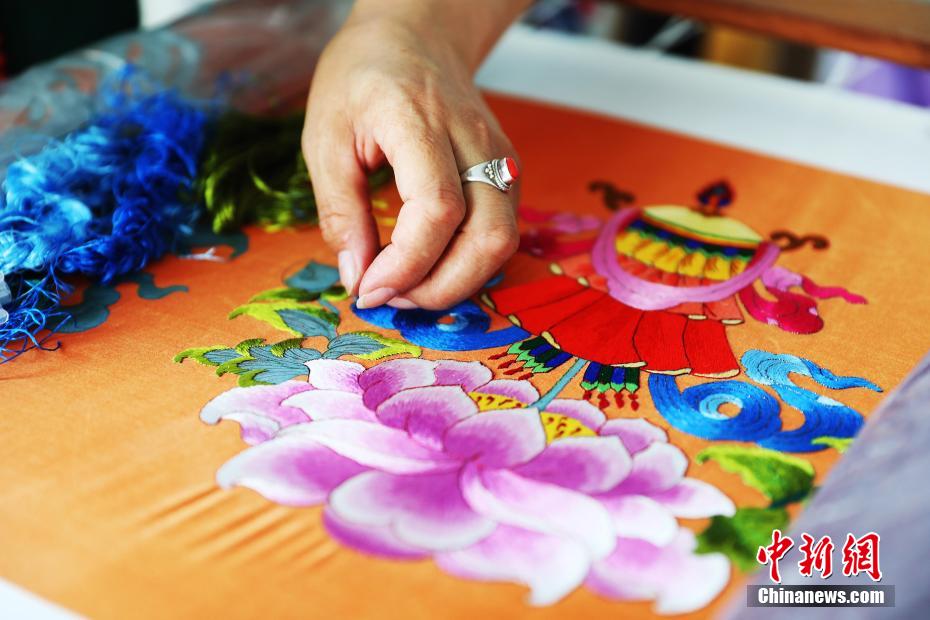 8月1日,記者拍攝青海省海南藏族自治州藏繡。藏繡源于公元9世紀(jì),與唐卡和堆繡并稱(chēng)為藏傳佛教三大藝術(shù),是中國(guó)少數(shù)民族傳統(tǒng)文化中最具特色的刺繡派系之一。藏繡根據(jù)其藝術(shù)表現(xiàn)形式和手法、地區(qū)差異等可分為多種派系,其中“海南藏繡”主要分布在青海省海南藏族自治州貴南地區(qū)和共和盆地為主的農(nóng)業(yè)區(qū)。