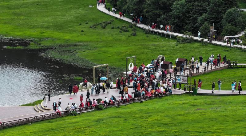 暑期“熱度”持續(xù)上升,親近自然、享受自然成為許多人樂享假期的休閑方式。7月以來,普達措國家公園游客量大幅增長,旅游場面異常火爆,迎來了新一輪暑期高峰,藍天碧水、白云野花、草甸牛羊,游客流連于獨美的高原畫卷中。據(jù)統(tǒng)計,截至7月30日,景區(qū)共接待游客29.37萬人次,7月景區(qū)單日最高游客接待量達1.4萬人次。