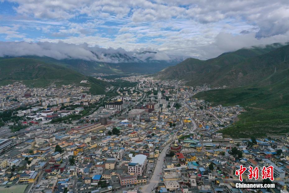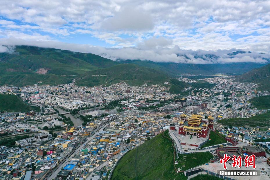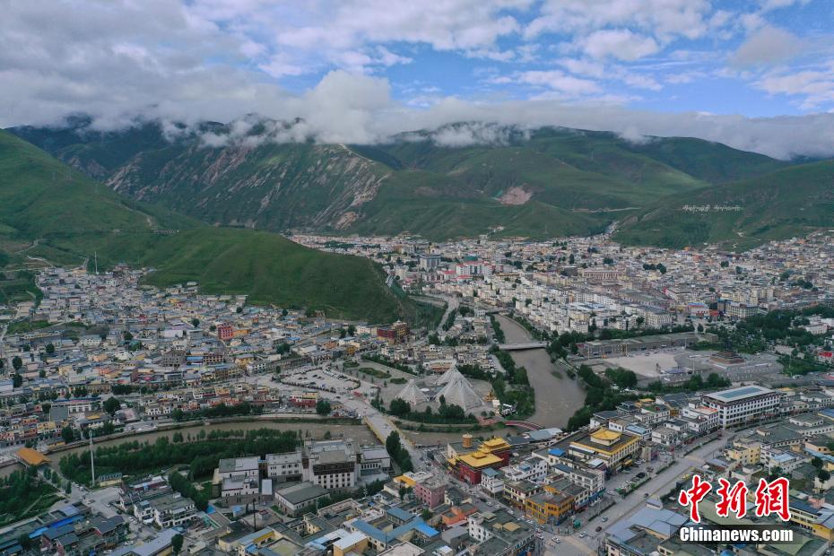 8月4日,航拍青海省玉樹藏族自治州玉樹市城區(qū)。馬銘言 攝