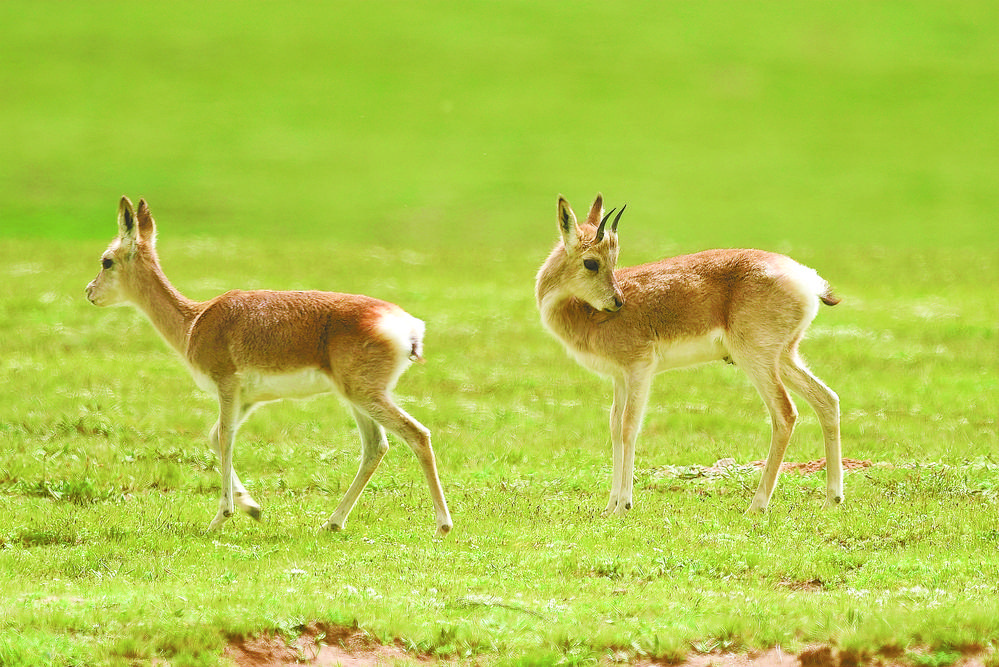 悠然的藏原羚。湖畔的藏野驢湖畔覓食的斑頭雁。張多鈞 攝