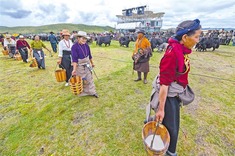 8月25日,四川省阿壩藏族羌族自治州紅原縣舉行第十一屆牦牛文化節(jié)牦牛產(chǎn)奶量比賽。紅原縣是優(yōu)良地方牦牛品種麥洼牦牛的核心產(chǎn)區(qū),擠牦牛奶是當(dāng)?shù)夭刈迦罕娭匾纳a(chǎn)生活方式,當(dāng)?shù)刂荚谕ㄟ^此項賽事讓更多人了解到牦牛文化的獨特魅力。