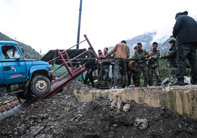 路橋坍塌群眾受困 武警官兵緊急救援