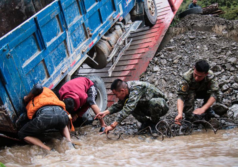 “同志,不要怕,我們是武警官兵,我們先給你處理傷口。” 甕云飛一邊安撫受傷群眾的情緒,一邊為他消毒止血、包扎傷口。后經(jīng)檢查,該群眾除了頭部有輕微皮外傷外,全身并無大礙。之后,中隊(duì)官兵又和當(dāng)?shù)厝罕娨黄鹜度胲囕v緊急救援,經(jīng)過幾個(gè)小時(shí)的努力,大家齊心協(xié)力將貨車拖至安全地帶。