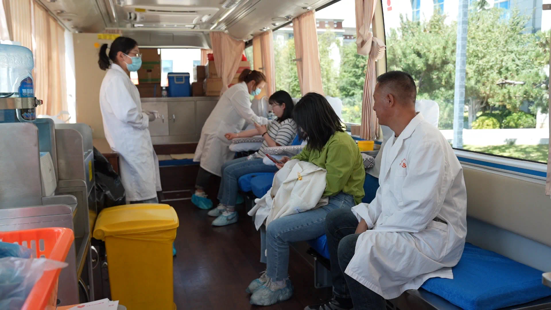 獻(xiàn)血現(xiàn)場(chǎng),在工作人員的引導(dǎo)下,參與捐獻(xiàn)的志愿者按照要求現(xiàn)場(chǎng)進(jìn)行填表、登記、血液檢驗(yàn)等程序后,依次進(jìn)行血樣采集。
