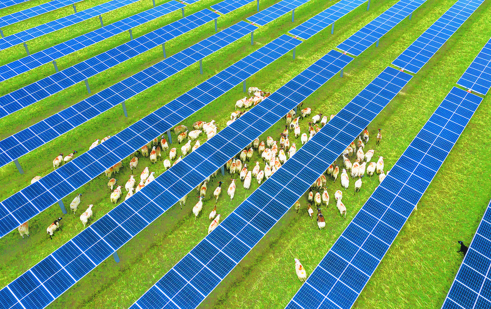 最貧瘠惡劣的地方,往往開出最驚艷的鮮花。用“光伏+”作文章,帶來的是越來越多的美好愿景。曾經(jīng)一片荒漠的塔拉灘一步步成為太陽能光伏板的“藍(lán)?!保诠夥宓摹氨幼o(hù)”下,昔日的茫茫戈壁“變身”為草原牧場,而周邊牧民也在光伏園區(qū)內(nèi)修羊圈供農(nóng)牧民飼養(yǎng)“光伏羊”。