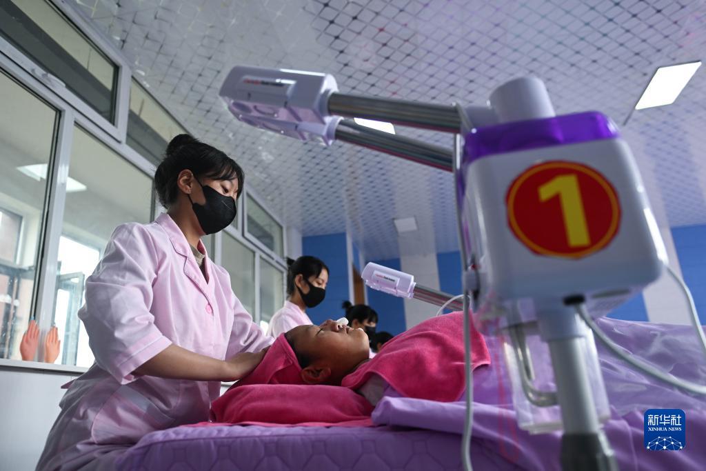 9月8日,在果洛藏族自治州職業(yè)技術學校,美發(fā)與形象設計學生在學習美容實訓課程。新華社記者 張龍 攝
