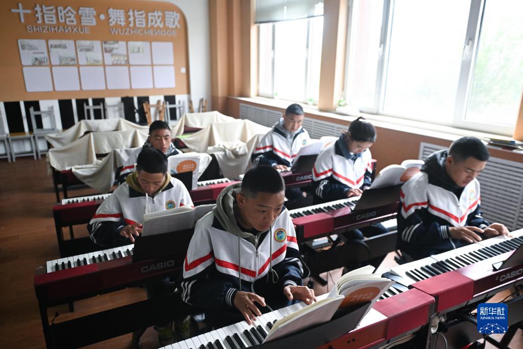 9月8日,在果洛藏族自治州職業(yè)技術學校,學前教育專業(yè)學生在上音樂課。新華社記者 張龍 攝
