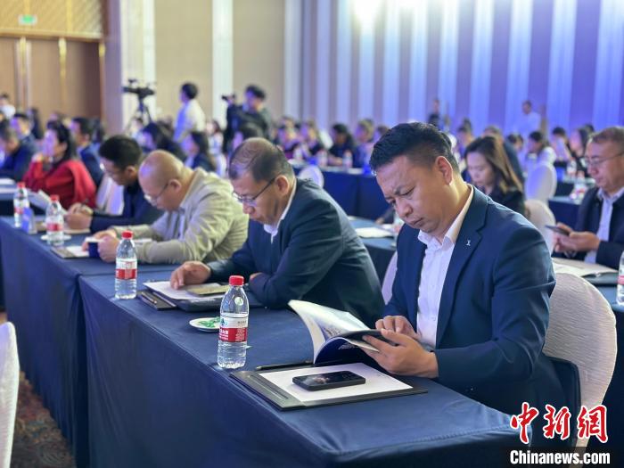 圖為參加推介會嘉賓查看相關資料。劉洋攝