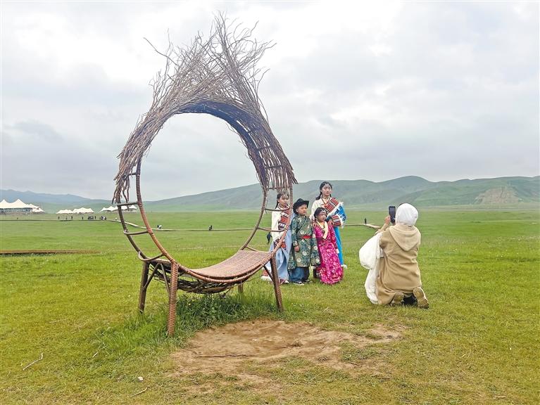 游客在阿米貢洪草原拍照留念。 旦增旺姆 攝