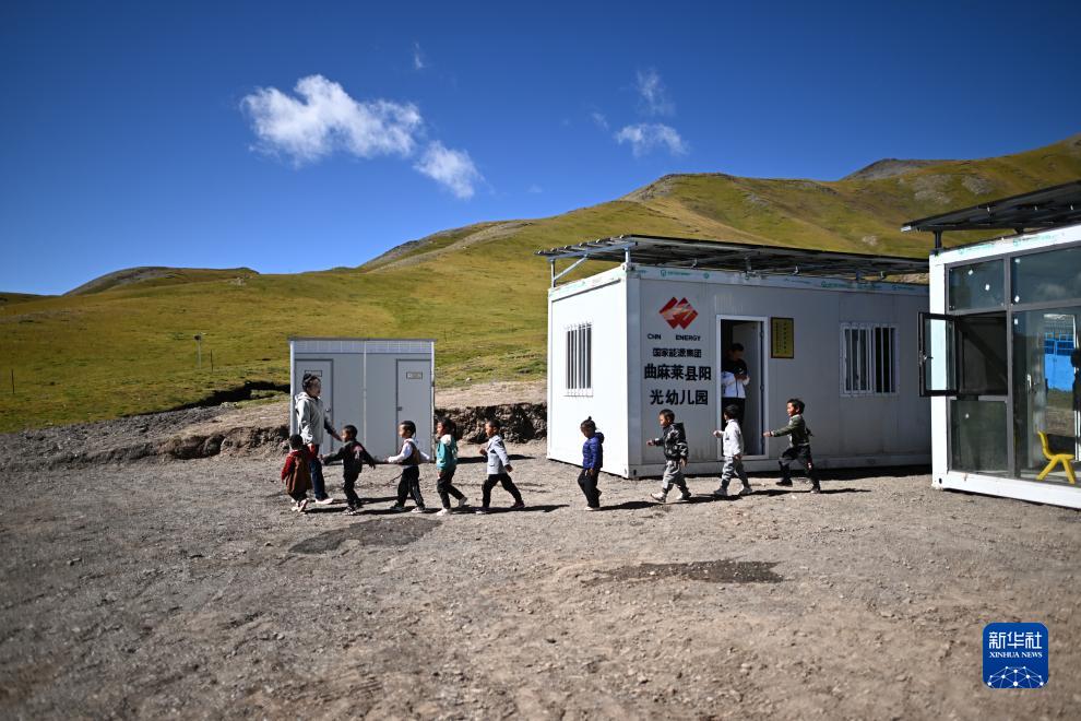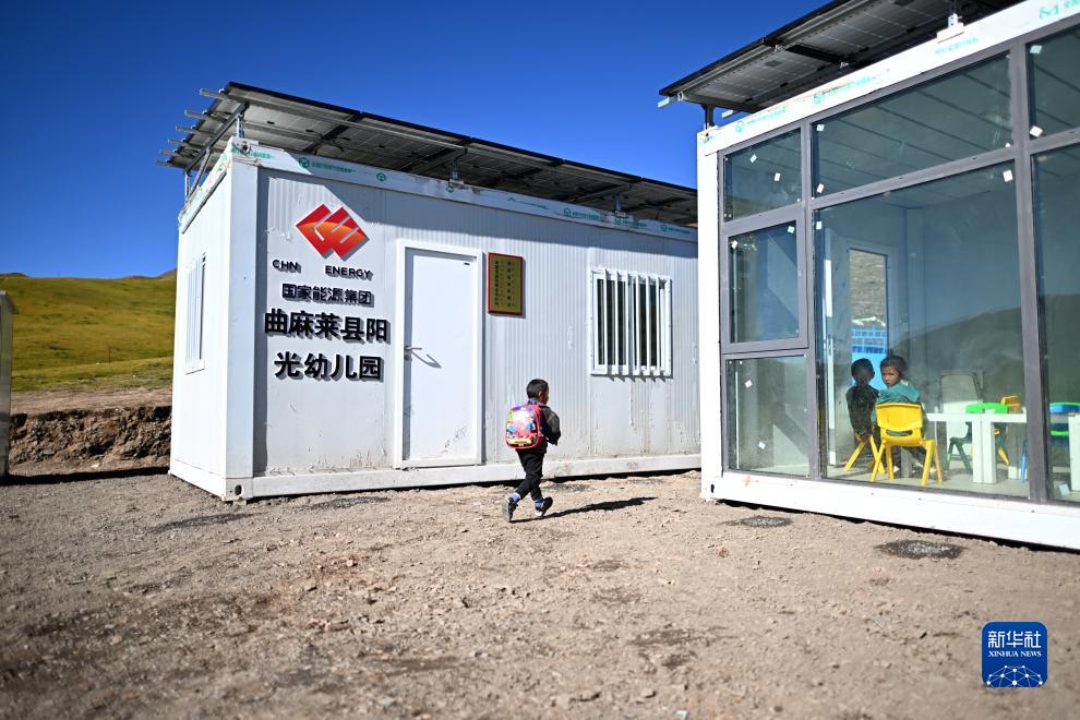 作為曲麻萊縣定點幫扶單位,國家能源集團自2022年起累計投入1350萬元,在曲麻萊縣建設(shè)15所陽光幼兒園。陽光幼兒園為集裝箱式房屋,配備屋頂離網(wǎng)儲能光伏系統(tǒng),可以滿足供暖、照明等需求。幼兒園招收居住在周邊牧場的兒童,讓孩子們在離家不遠處就能接受學(xué)前教育。