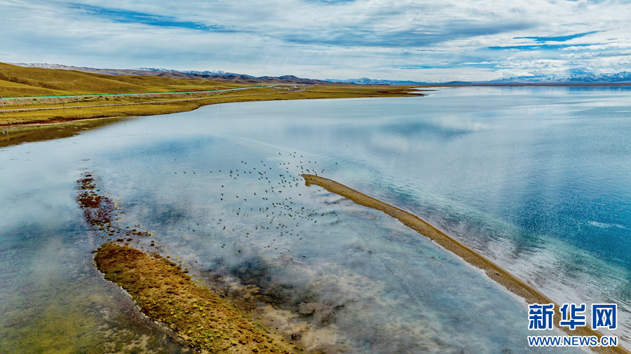秋日清晨,位于有“千湖之縣”之稱(chēng)的青海省果洛藏族自治州瑪多縣境內(nèi)的冬格措納湖湖水湛藍(lán)、天空遼闊,湖畔草地綠黃交融,靜美迷人。