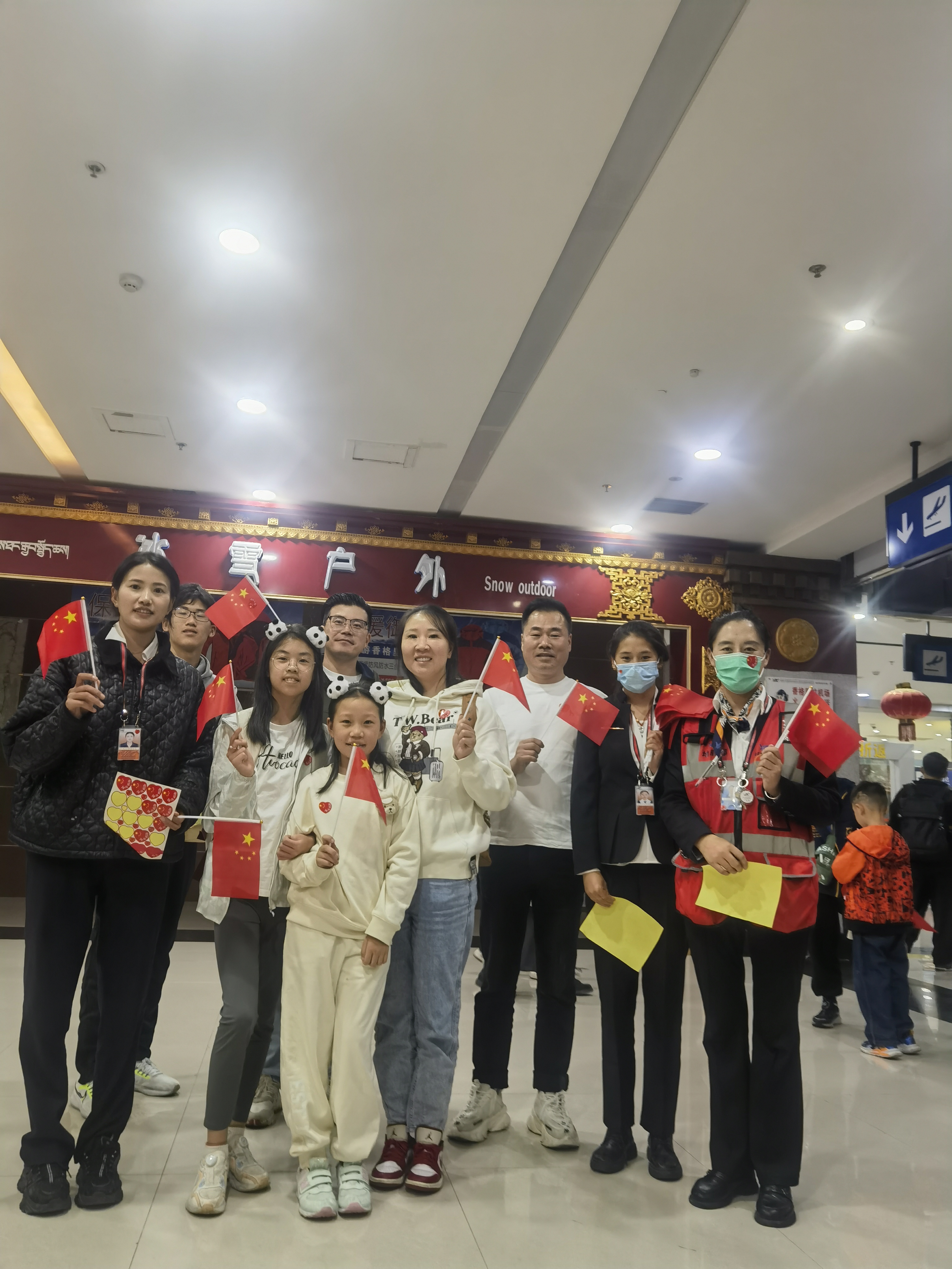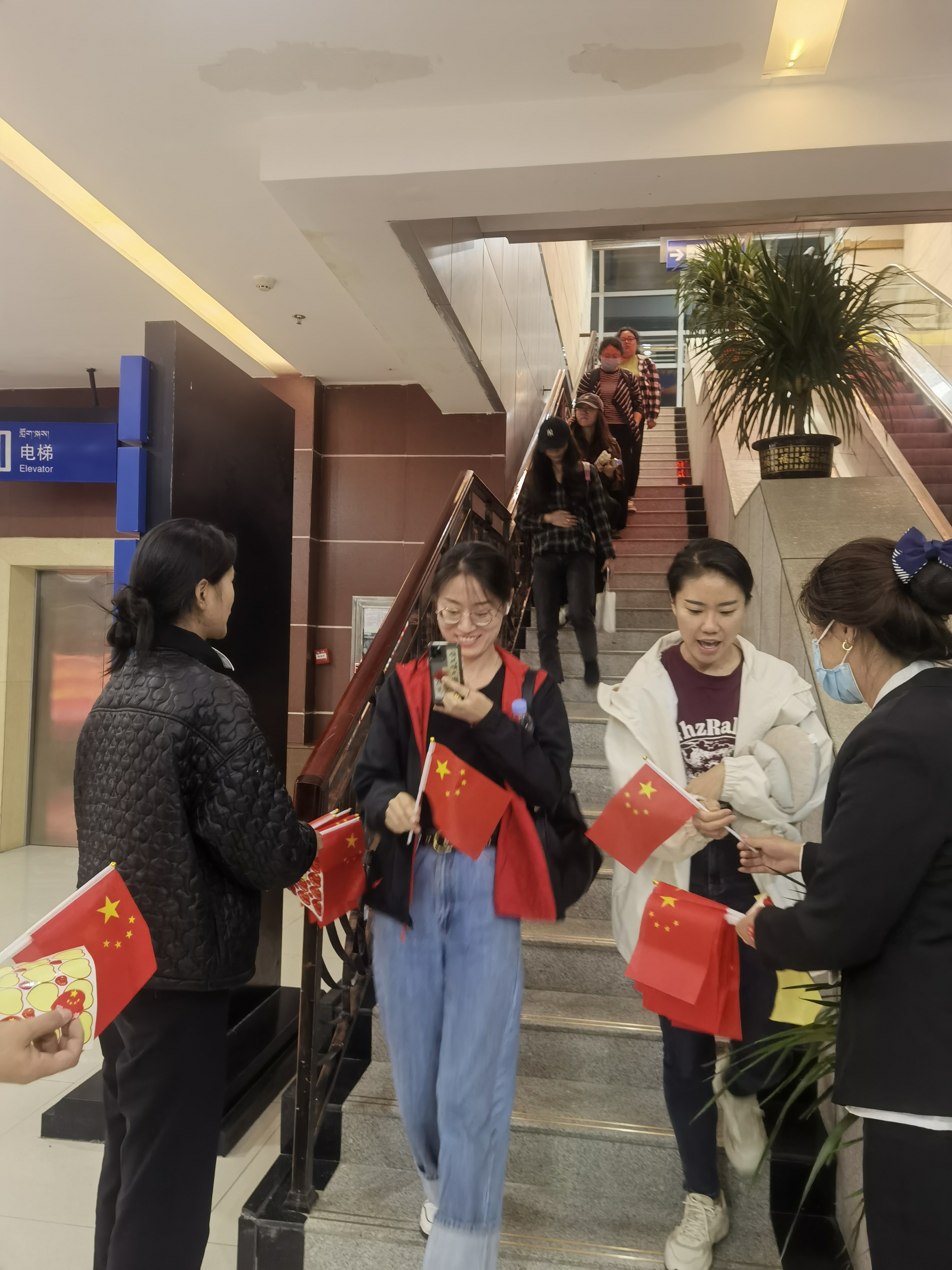 踐行真情服務,提高服務質量。節(jié)日期間,迪慶機場以力保航班正點率為重點,始終堅持將“旅客滿意”作為衡量服務工作的標準,在候機樓設立志愿者服務站,積極為老、弱、病、殘、孕等特殊旅客提供服務。同時,工作人員身著民族服飾開展特色服務,給旅客精心準備了具有云南當?shù)靥厣脑嘛灱疤枪诼每秃驒C途中,為旅客準備了精彩的投壺游戲,并為參加游戲的旅客送去小禮品,讓旅客在歡聲笑語中度過漫長候機時間,并向旅客發(fā)放小紅旗和“我愛中國”小徽章,送上真誠的節(jié)日祝福,點燃了更多人的愛國情懷。