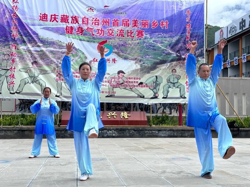 10月14日,迪慶州首屆美麗鄉(xiāng)村健身氣功交流比賽在香格里拉市金江鎮(zhèn)興隆村紅色研學基地開賽。此次比賽共有8支代表隊80名運動員參賽。
