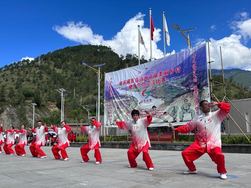 迪慶藏族自治州首屆美麗鄉(xiāng)村健身氣功交流比賽在香格里拉市金江鎮(zhèn)興隆村紅色研學基地開賽