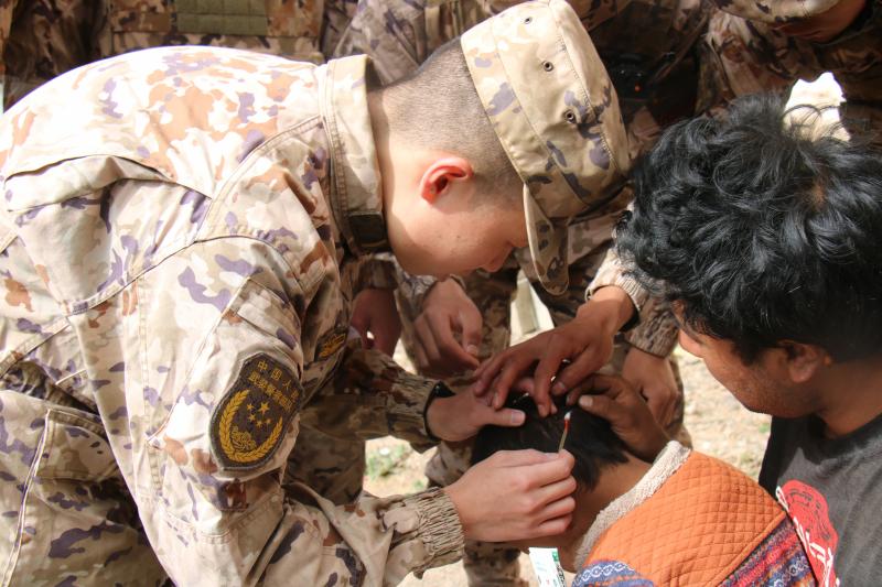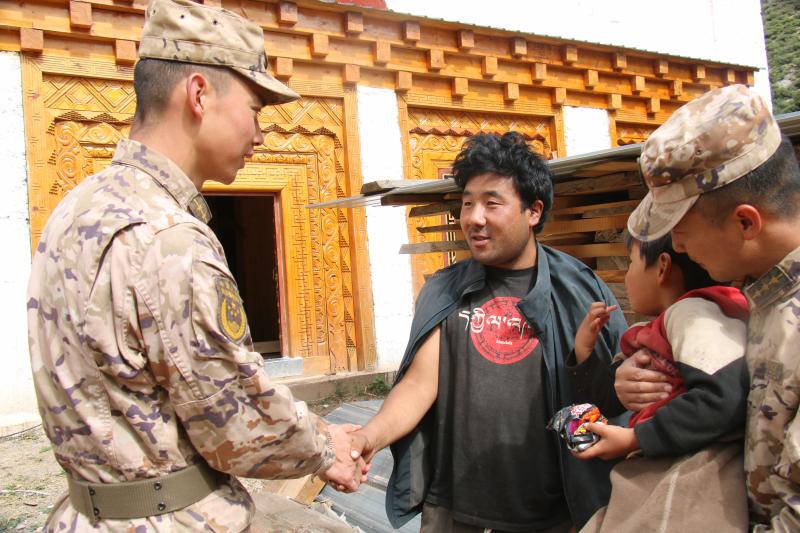 “非常感謝你們,不僅幫助孩子脫險(xiǎn),還這么熱心地給他擦藥?!睎|旺鄉(xiāng)村民格桑緊緊握住官兵們的手,感激不已地說(shuō)。