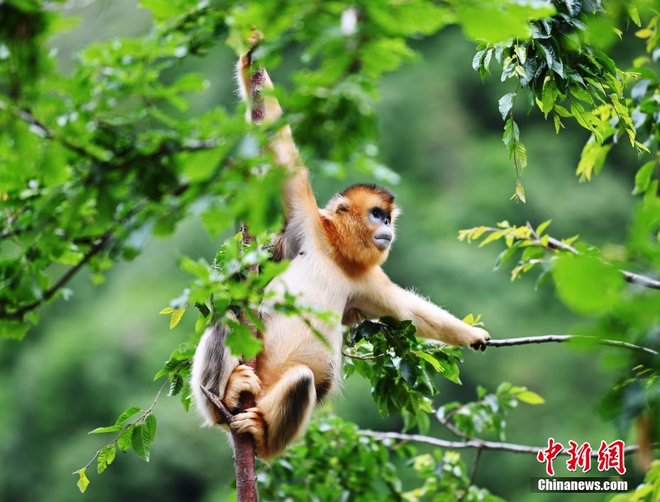 6月17日,在位于四川省阿壩州九寨溝縣境內(nèi)的四川省白河國家級(jí)自然保護(hù)區(qū),野生川金絲猴萌態(tài)十足。[詳細(xì)] -