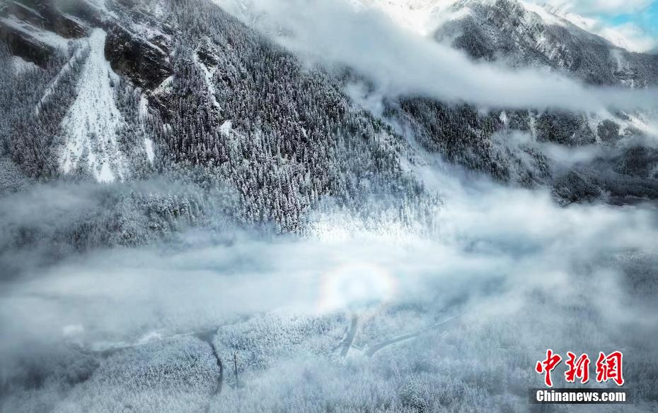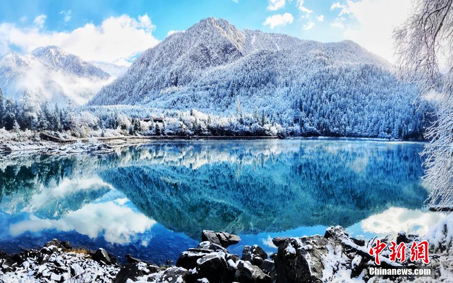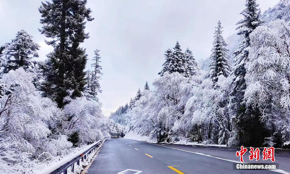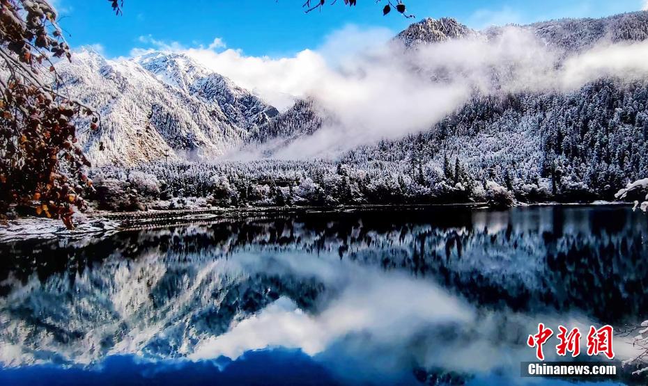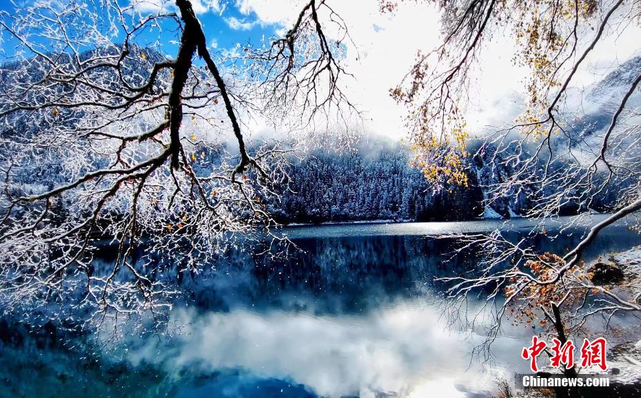 10月18日晚,九寨溝景區(qū)迎來大面積降雪,景區(qū)內(nèi)的長海、五彩池等景點(diǎn)披上銀裝,五彩秋葉與白雪相撞,美得像童話世界一般。