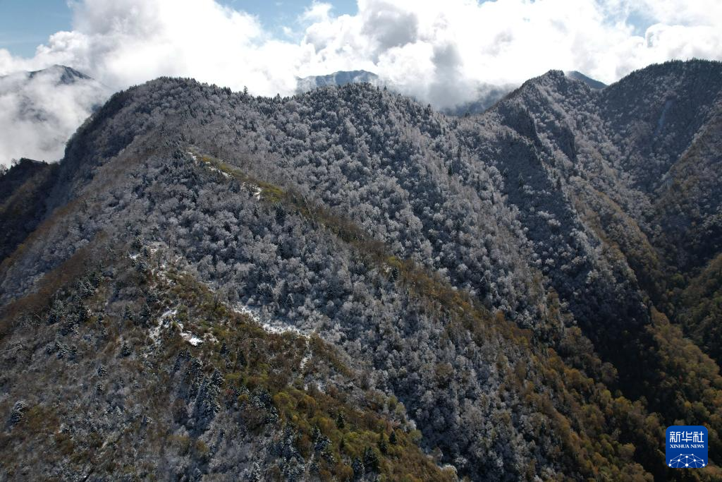 金秋時節(jié),位于甘肅省甘南藏族自治州舟曲縣境內(nèi)的拉尕山秋意漸濃,一場秋雪降臨后,拉尕山云纏霧繞,斑斕如畫。