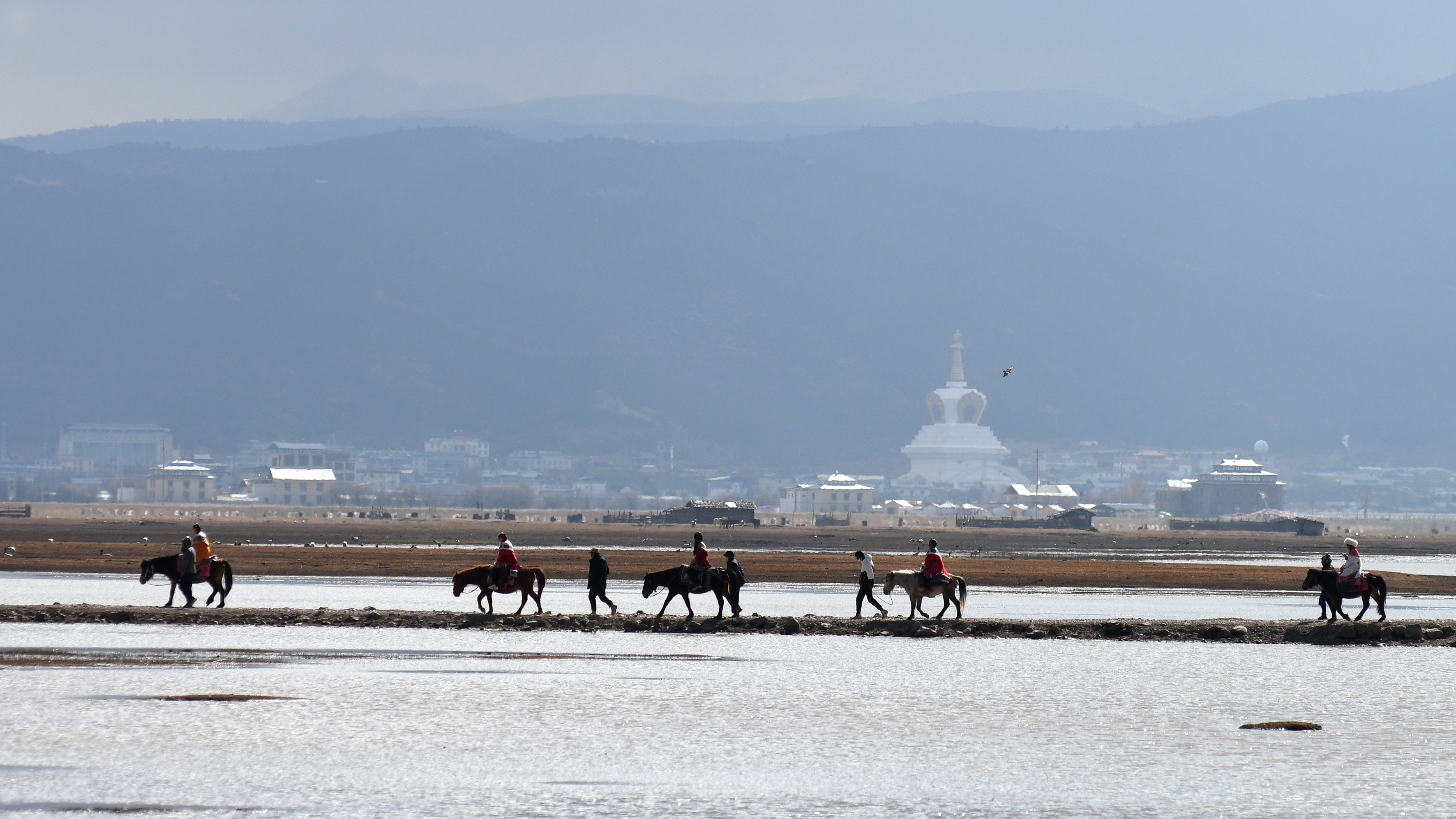 冬季的普達(dá)措景區(qū),林濤載水聲,藍(lán)天伴幽湖,寧靜無喧囂;冬季的納帕海,皚皚白雪成為了黑頸鶴、黑鸛、白尾海雕、斑頭雁等珍稀的鳥類自由作畫的繪本;冬季的噶丹·松贊林寺,當(dāng)?shù)谝豢|陽光灑向寺廟的金頂,若隱若現(xiàn)的云霧和裊裊桑煙下藏著人間仙境;冬季的獨(dú)克宗古城,綿綿白雪裝飾著藏式民居,穿著民族服裝的人們踏著青石板路緩緩走過,美好而生動(dòng)。